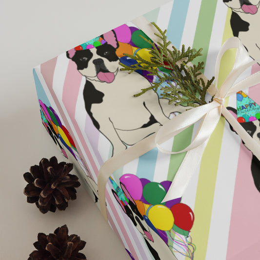 French Bulldog Birthday (Black Pied) Color Diagonal Background Wrapping Paper Sheets