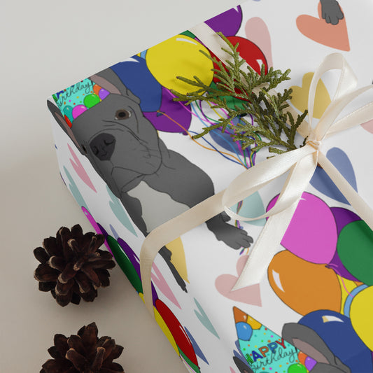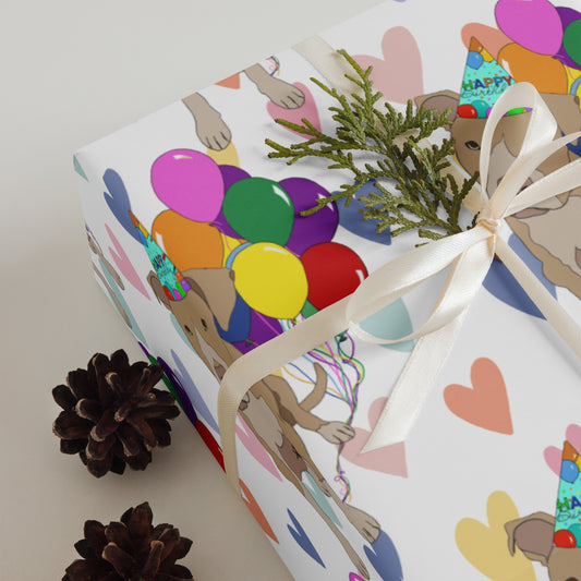 Tan Pit Bull Birthday Color Hearts Background Wrapping Paper Sheets