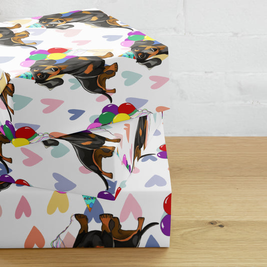 Dachshund Birthday Color Hearts Wrapping Paper Sheets