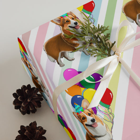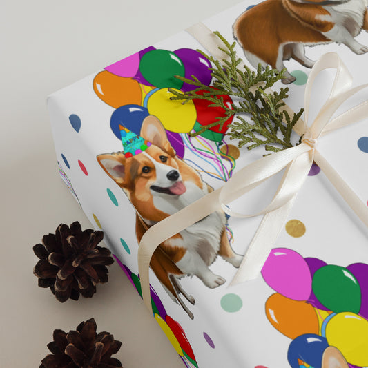 Corgi Birthday Color Polka Dots Wrapping Paper Sheets