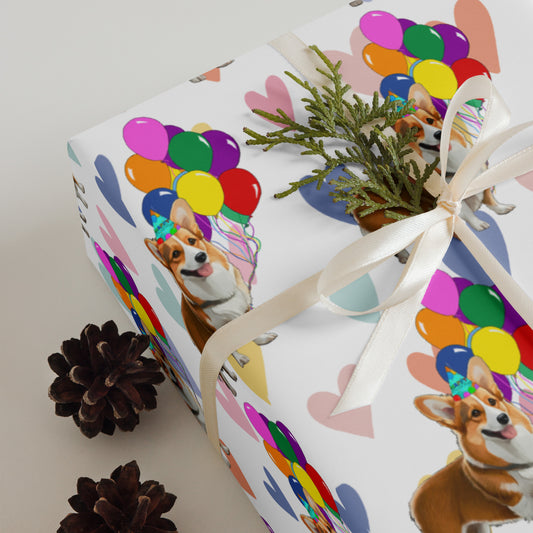 Corgi Birthday Color Hearts Wrapping PaperSheets