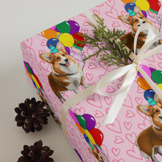 Corgi Birthday Pink Color Hearts Wrapping Paper - Sheets